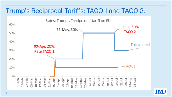 On 11 July, two days after he should have imposed the threatened 50% tariff, President Trump sent a scary-sounding letter to the EU. Most of the press picked it up as showing how the American leader was so strong and determined. But in fact, the EU’s letter was a double TACO.