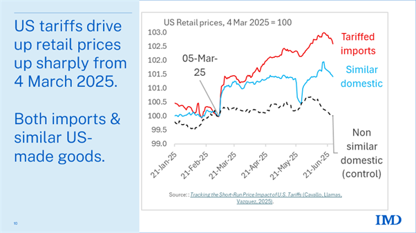 Recently updated research by Cavallo et al at Harvard Business School shows that retail prices have already risen in reaction the tariff since 4 March 2025 (which is when tariffs on China went up a lot).