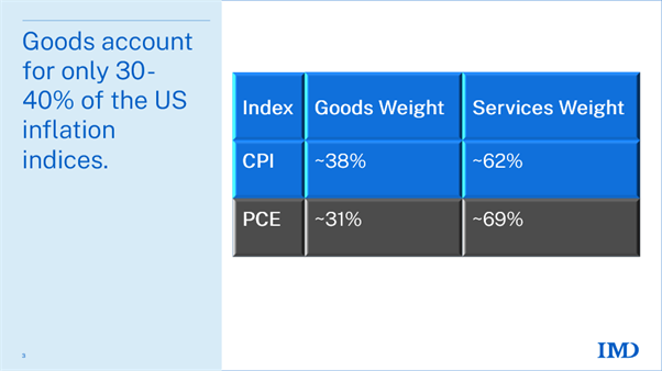 2. Tariffs only fall on goods and goods count for only 30-40% of the standard inflation indices (see table).