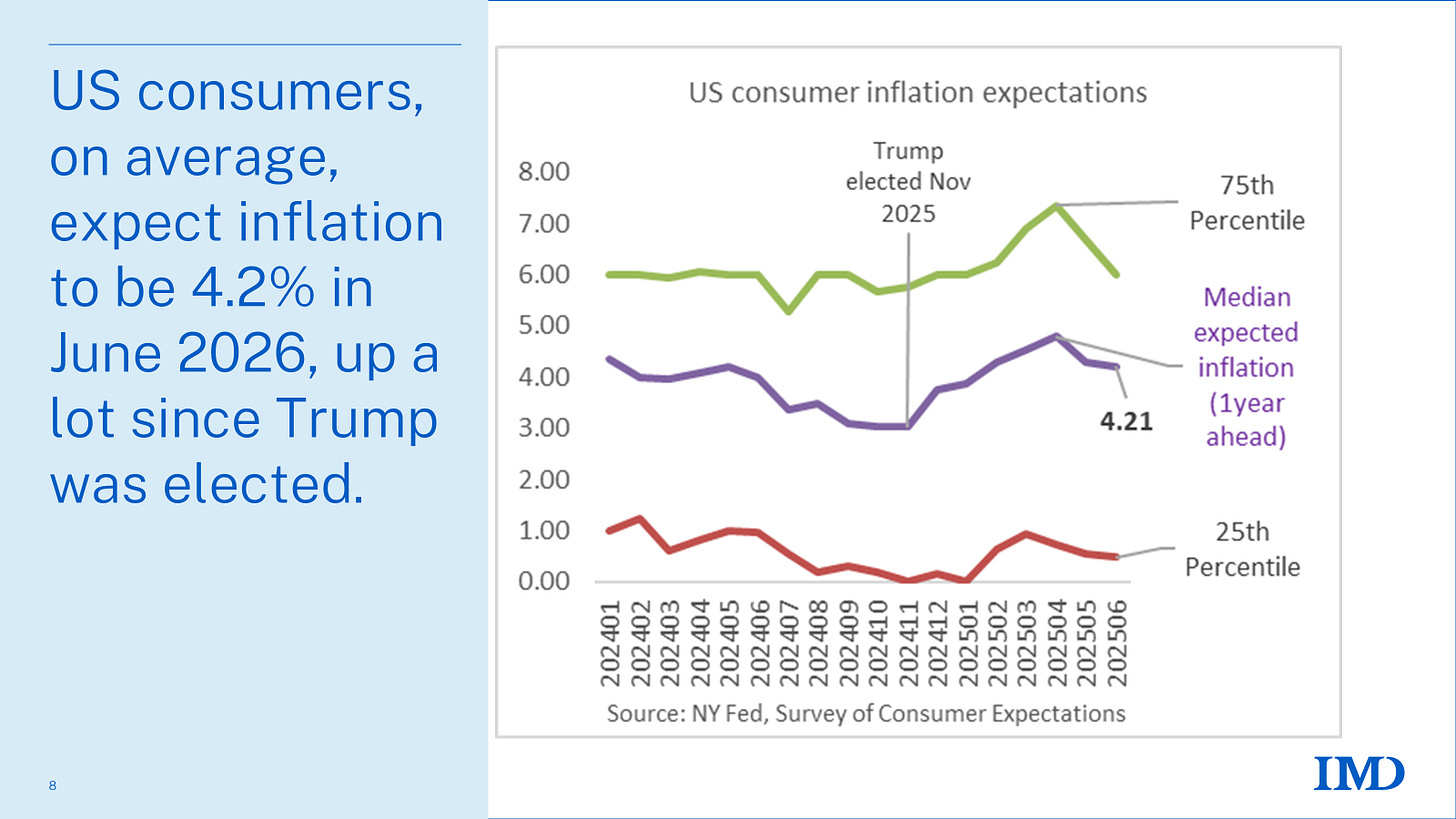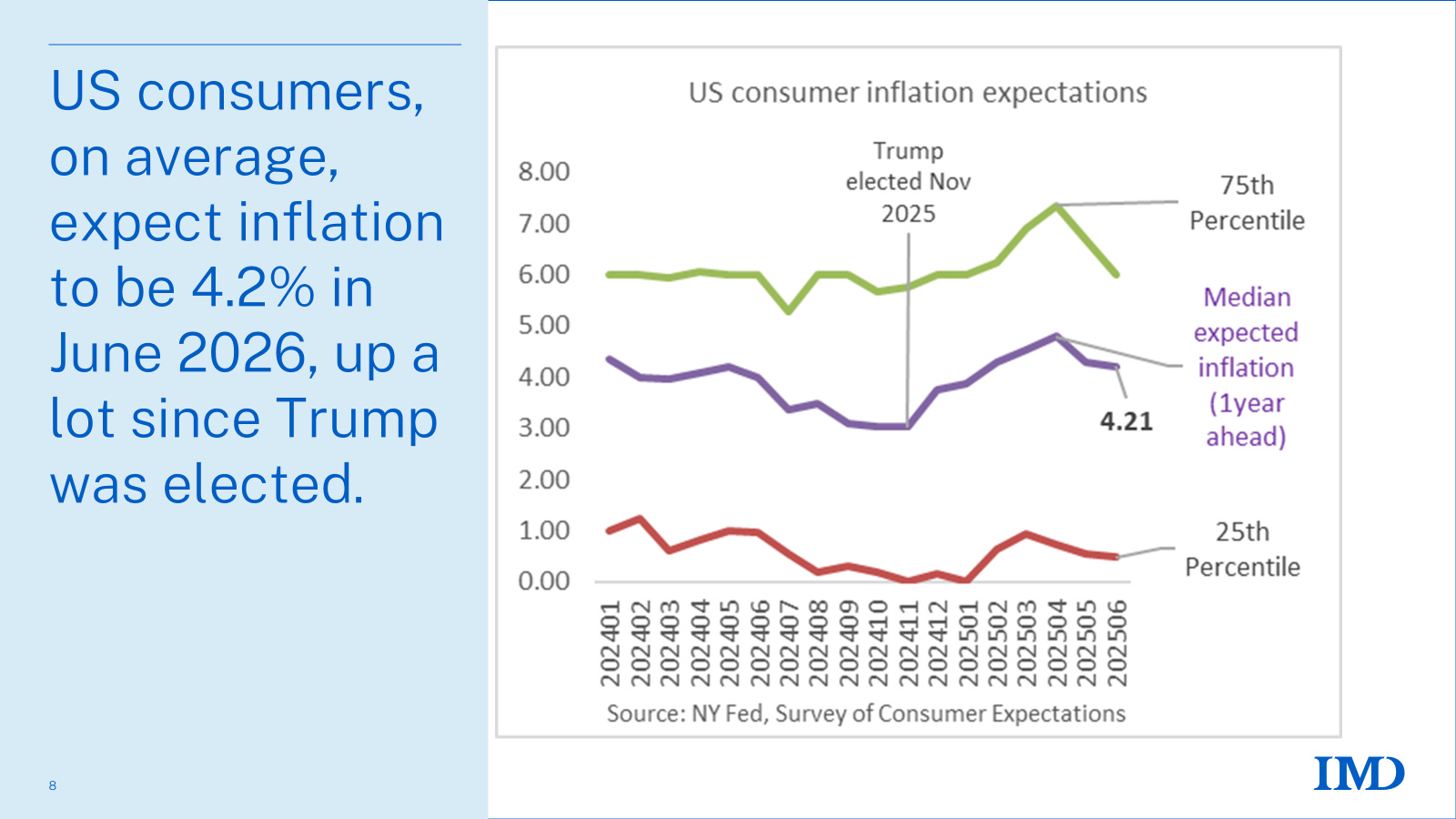 Mainstream forecasters are suggesting that US inflation will rise from 2.3% today to above 3% for the whole of 2025. US consumers are much more pessimistic about it.